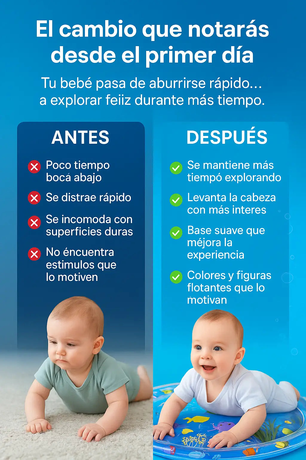 Entre 5 y 15 minutos según la edad del bebé. Con el tapete, suelen disfrutar más tiempo porque les resulta más divertido.